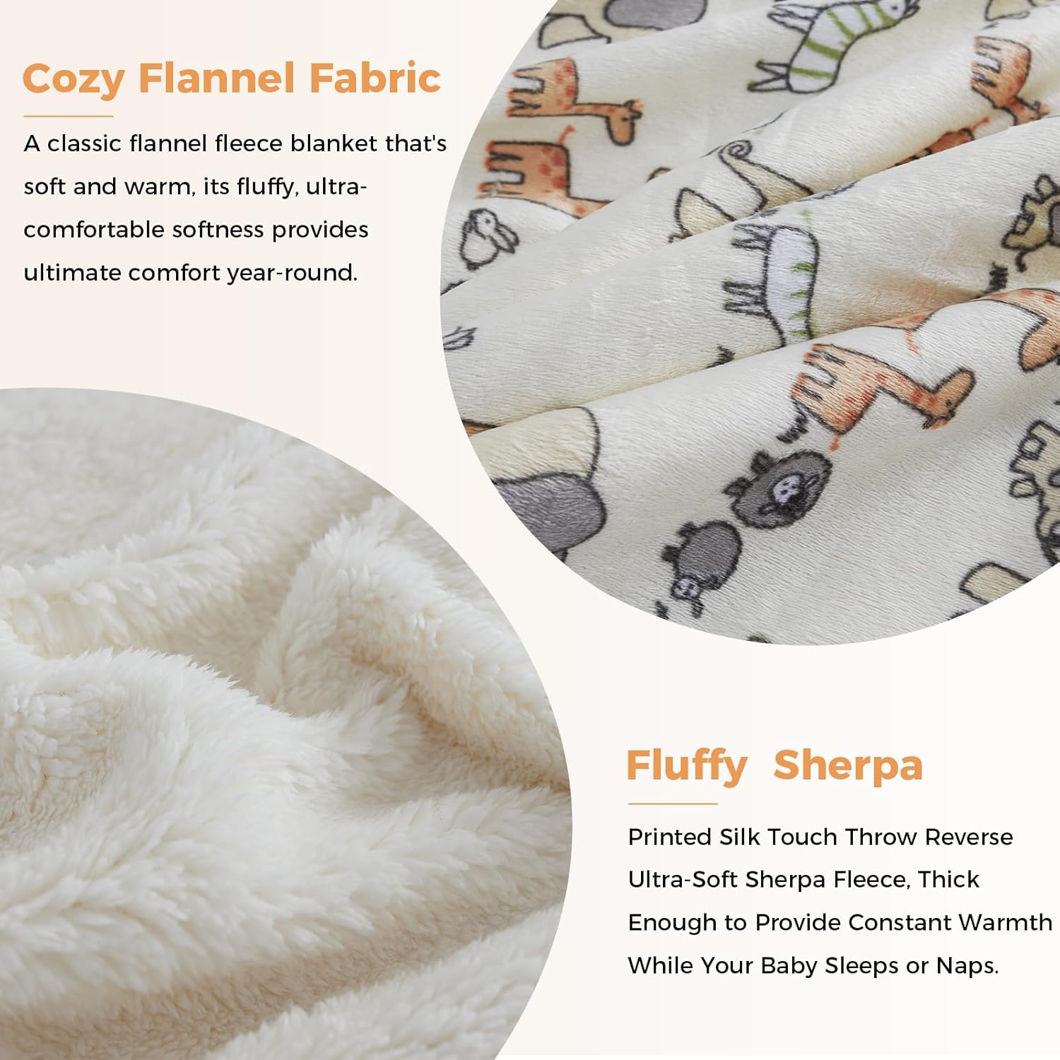 Sherpa Flannel Blanket:Our throw blankets are used cozy Sherpa Flannel material,made of high strength soft polyester microfiber,which is more comfortable and breathable,skin friendly for toddlers,give a good night sleep experience for them