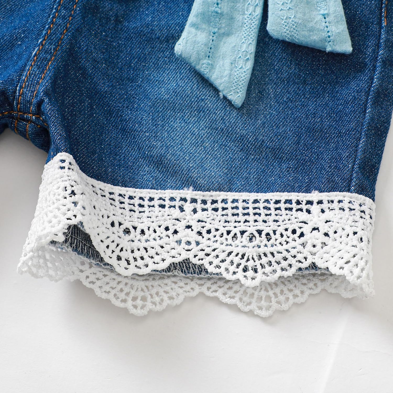 Be the first to review “Baby Girl Clothes Toddler Girl Summer Outfit Ruffle Short Sleeve Lace Shirt Blue Jean Shorts Set Toddler Clothes Summer”