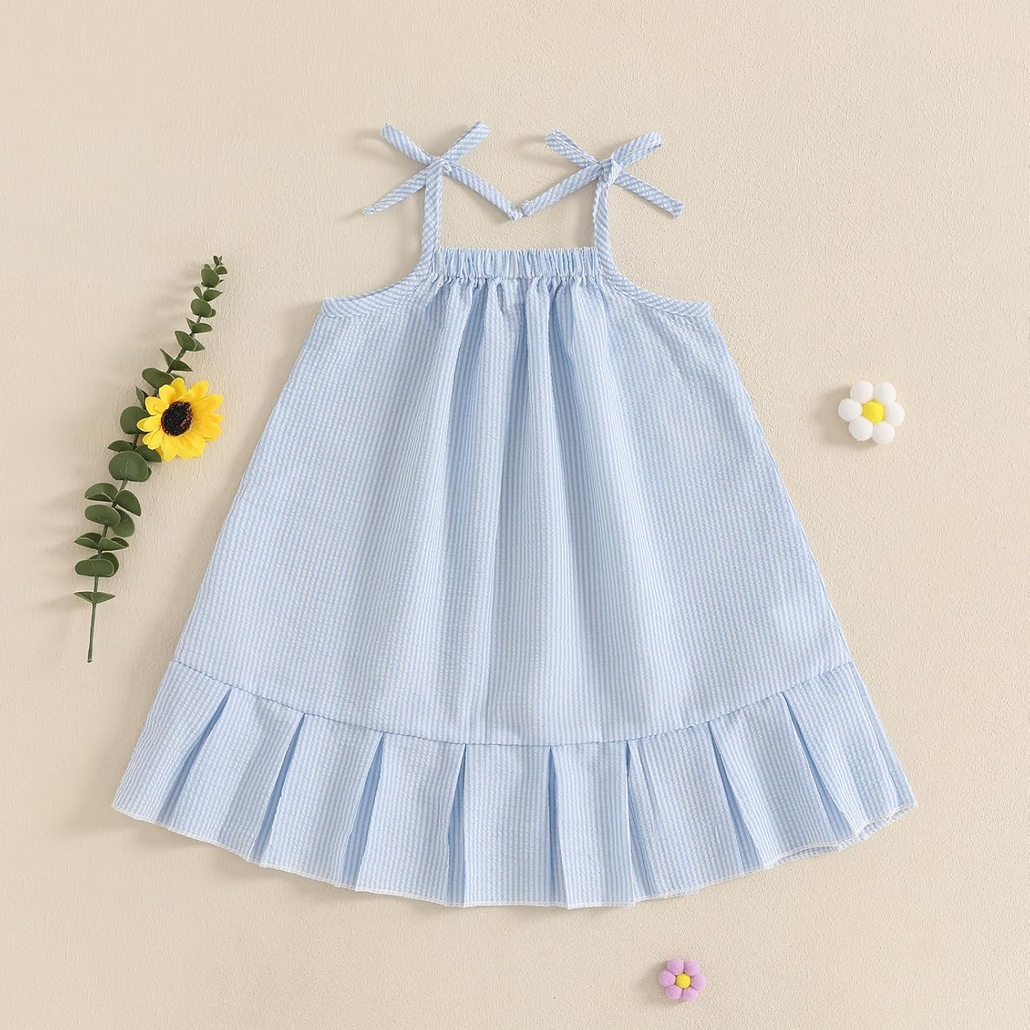 Baby Girl Summer Daily Dress Stripe Tie-Up Spaghetti Strap Sleeveless 6 12 18 24 Months 3 4 T