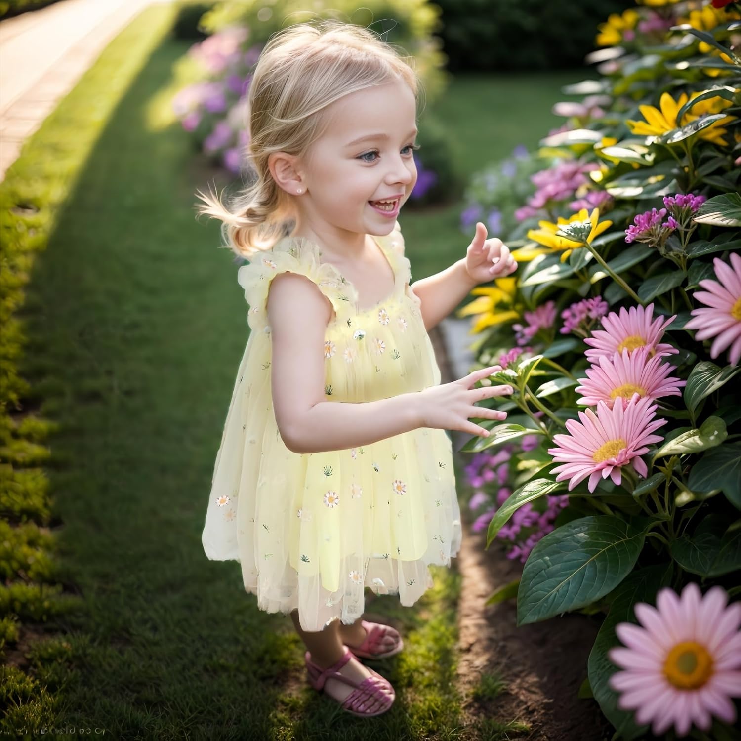 The skirt is covered with vivid embroidery of small flowers, and the double-layer gauze skirt design creates a rich sense of layering, highlighting the sunshine, cuteness, and beauty, making it unforgettable at first sight.