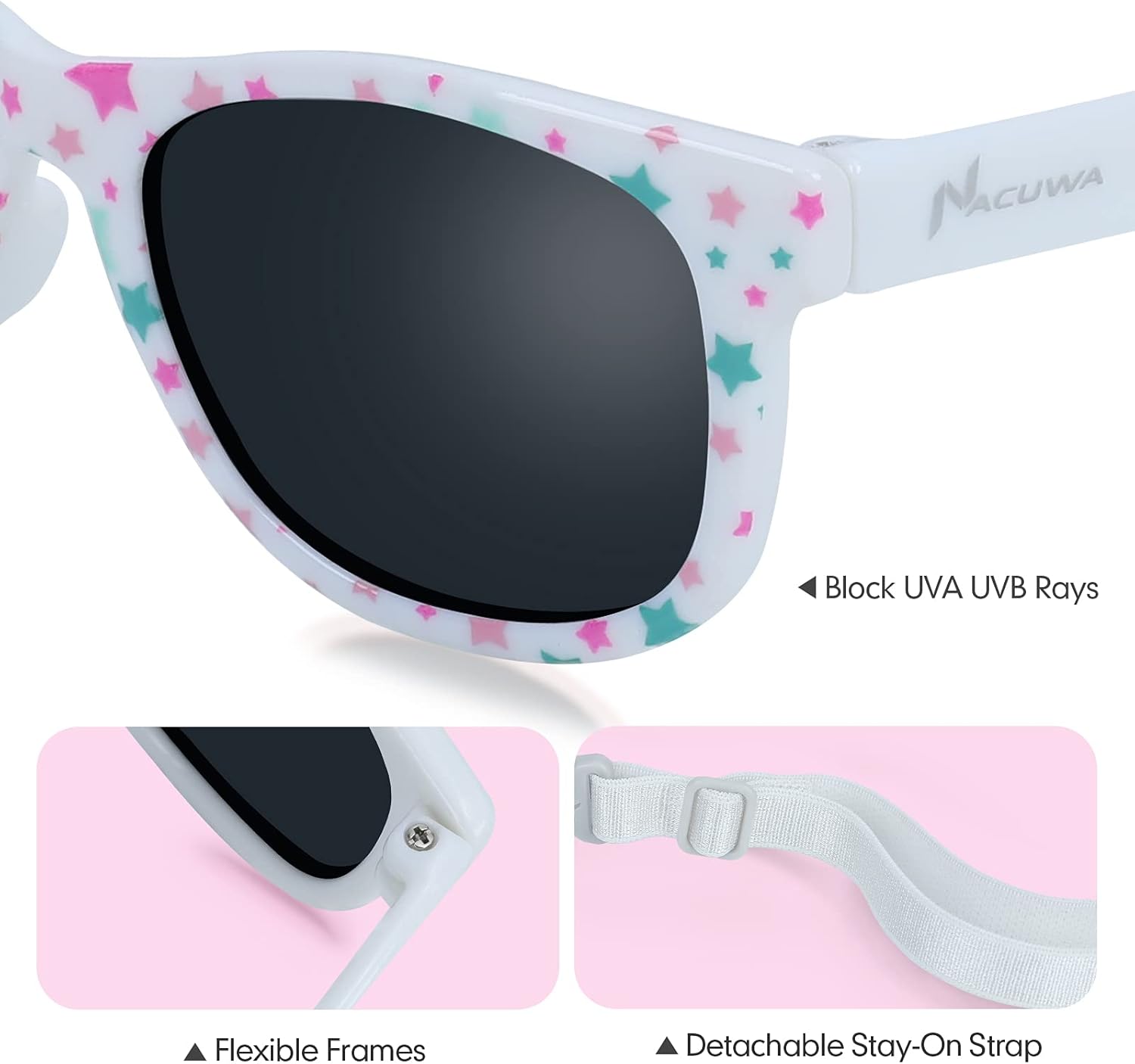The detachable strap, flexible frames and complete UV protection make these sunglasses the perfect everyday accessory for your infant or toddler