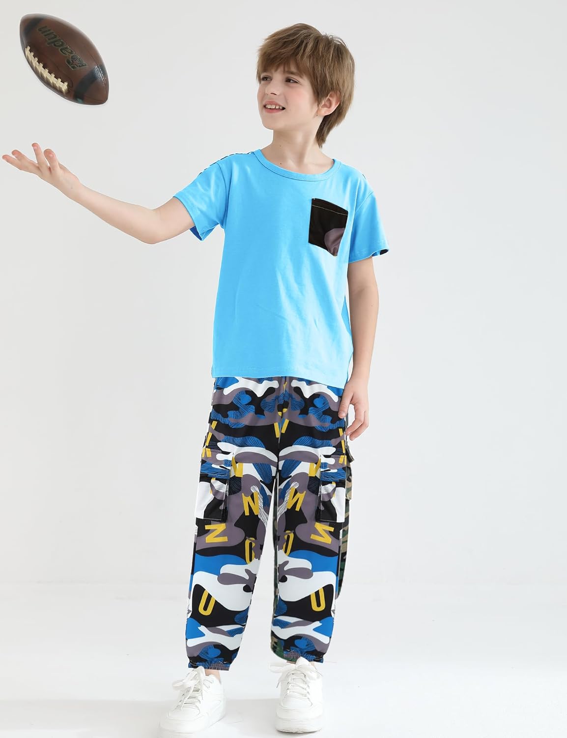 Boys Clothes,Boy outfits 2-Piece Camouflage Short-Sleeved T-shirt Camouflage Pant Teen Boys Clothing