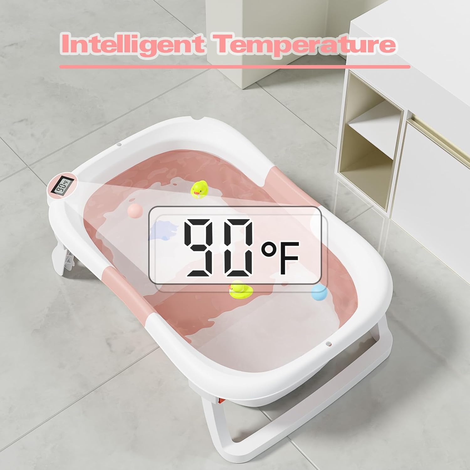 【Visible Temperature】Baby Bathtub is equipped with a temperature sensor, convenient for parents to adjust the water temperature in time. Ensure the safety and comfort of the baby when bathing.