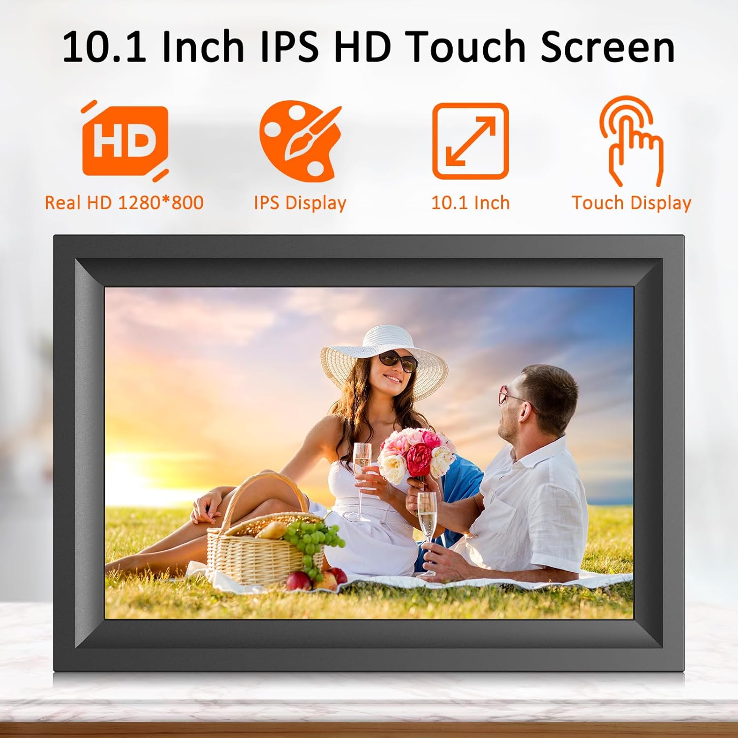 【10.1 Inch HD Touch Screen】: The 10.1 inch WiFi digital photo frame is equipped with 1280*800 high resolution and sensitive IPS touch screen. The image quality is clear and vivid. User-friendly touch screen design makes the digital frame easy and convenient for people of all ages to operate and play slideshows & videos.
