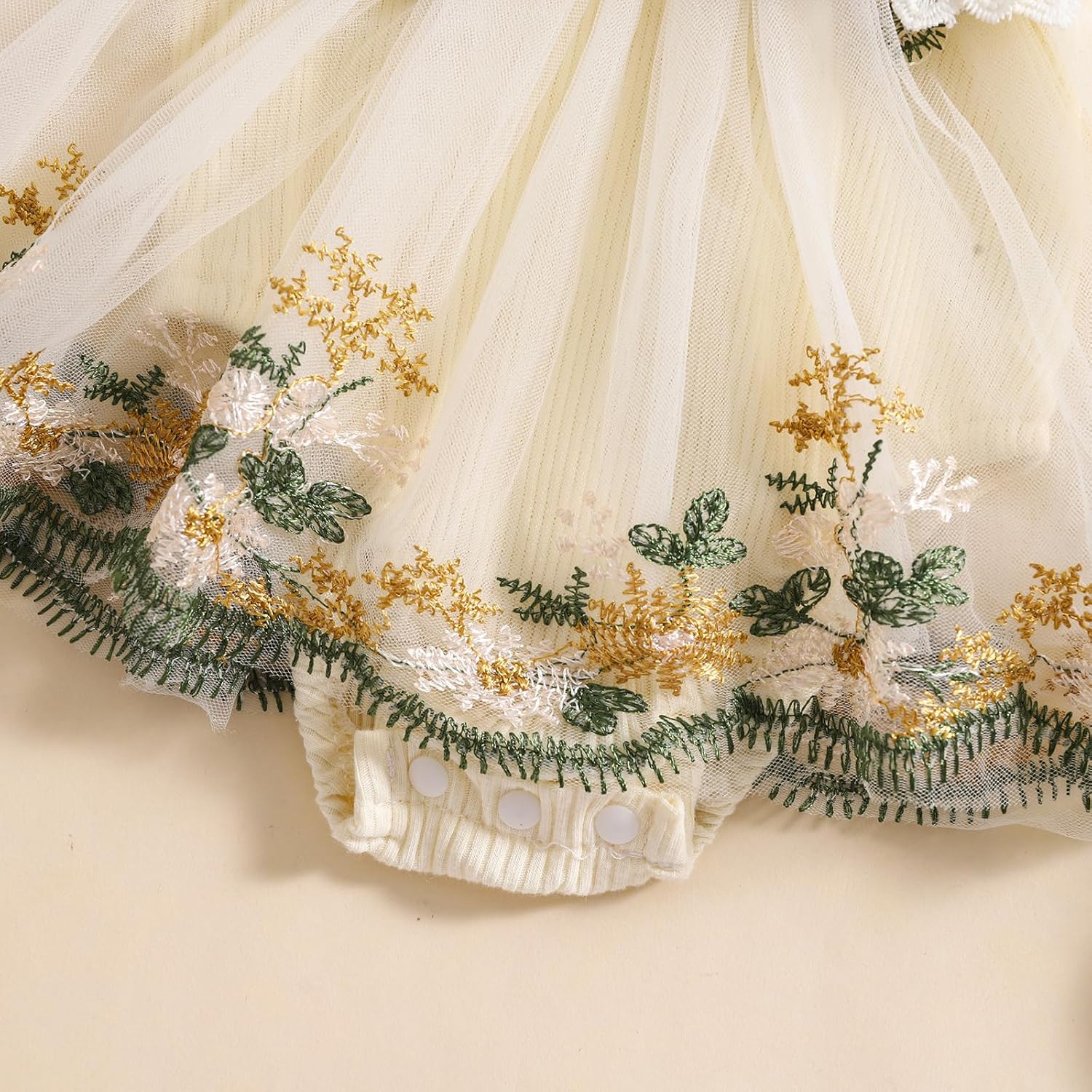 Baby Girls Rompers Dress Round Neck Floral Embroidery Mesh Skirt Hem Infant Bodysuits Jumpsuits with Headband