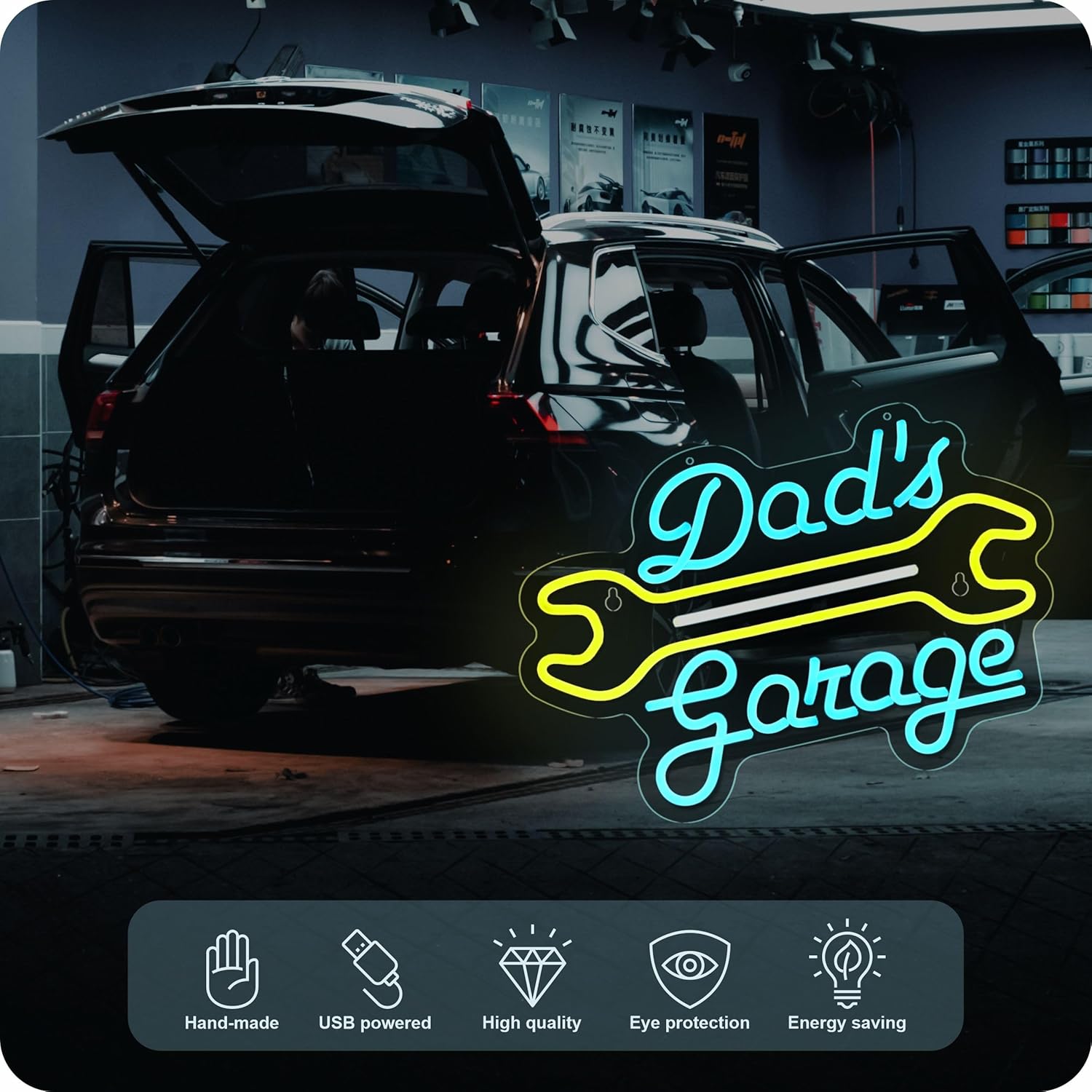 Garage Neon Sign for Wall Decor Dad’s Garage LED Light Car signs for Auto Repair Shop Man Cave Workshop Gift for Fathers Day 12.6 x 16.5 in