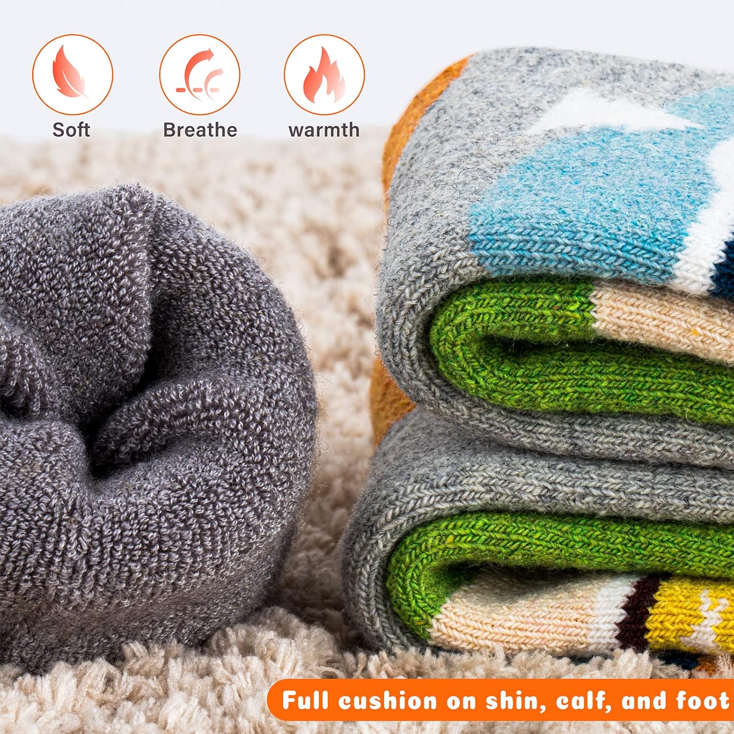 Over the calf design(OTC): The knee high stockings covers the whole calf to keep your leg warm during snow sports, ice skating, camping, hiking, hunting, trekking
