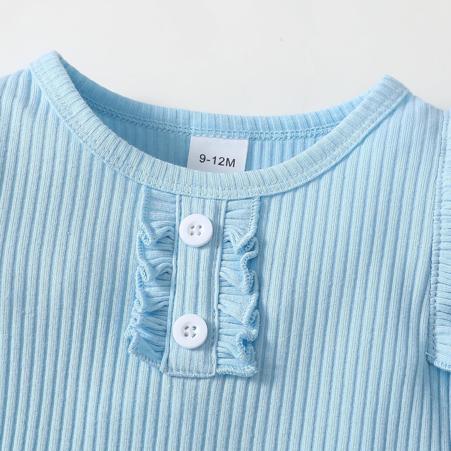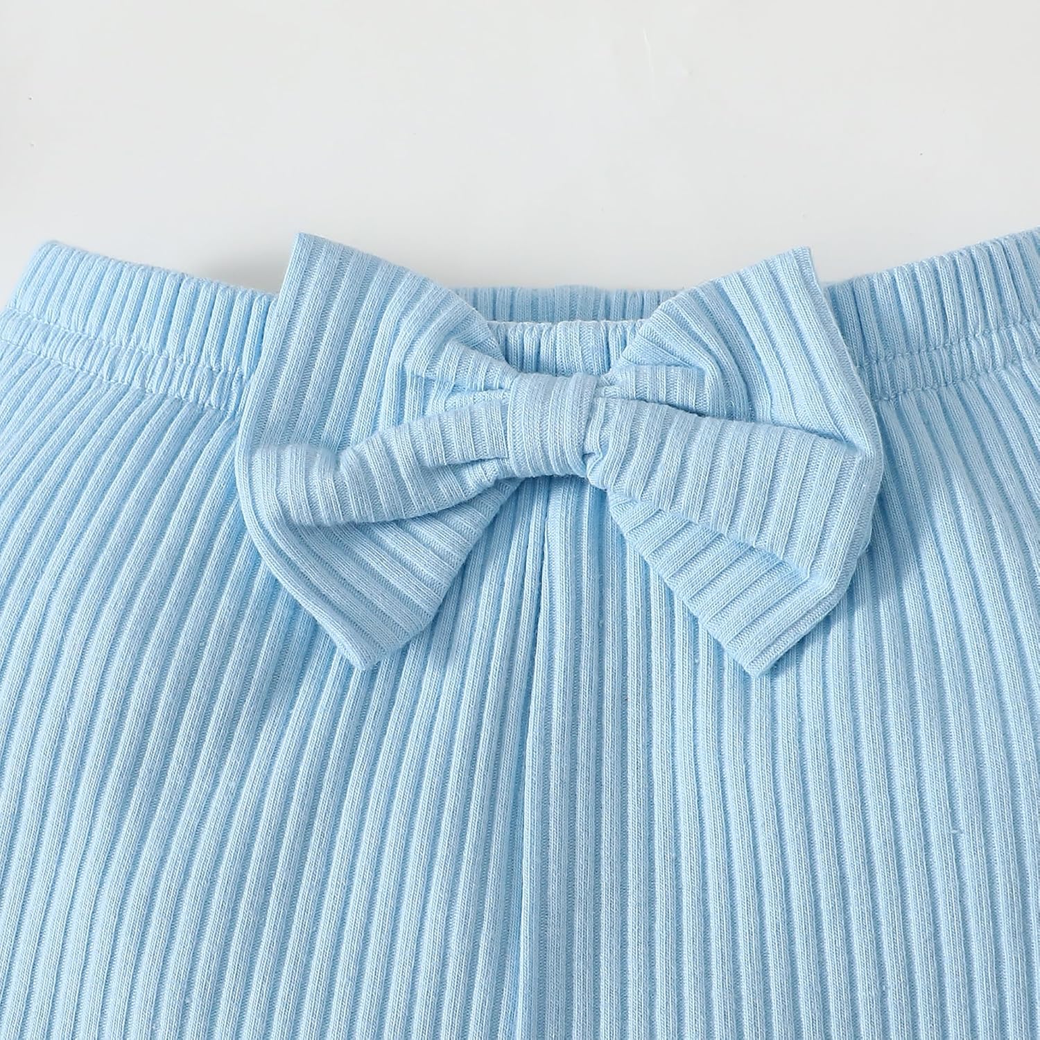 Infant Baby Girls Outfit Cute Ruffle Sleeve Ribbed Knit Romper Bodysuit and Flare Pants Clothes Set 3 Piece