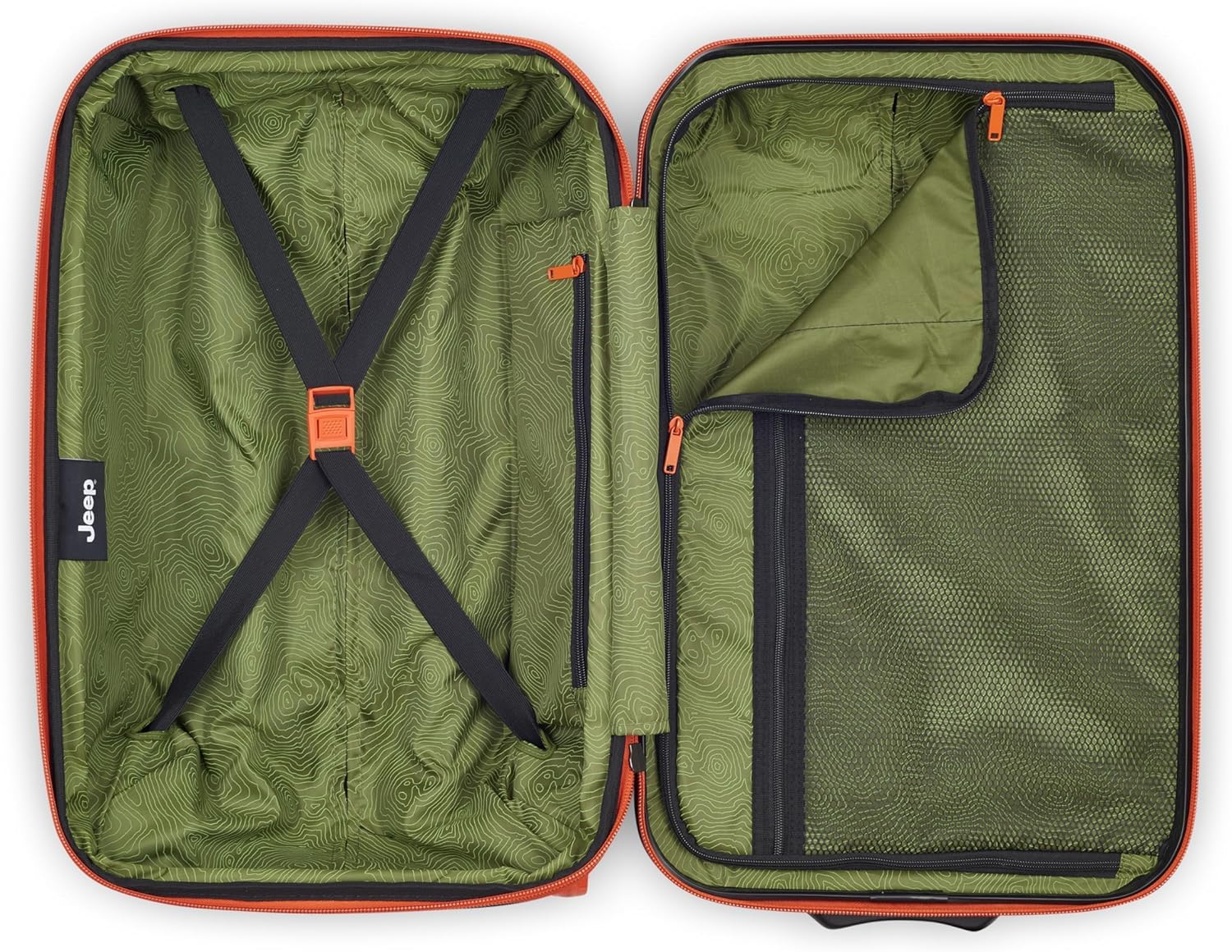 Introducing the rugged and adventure-ready Jeep JHOO3B expandable hardside luggage, emblazoned with the iconic Jeep logo. Crafted for explorers and travelers alike, this luggage boasts durable two wheels for effortless navigation through any terrain, alongside two sturdy carry handles for easy transport. With interlocking zippers adding security, you can embark on your journeys worry-free. Inside, discover a well-equipped interior featuring tie-down straps, a convenient flat pocket for essentials, and a zippered mesh divider to keep your gear organized on the go. Stackable design ensures space optimization for all your adventures. Gear up with Jeep and journey into the unknown with confidence!