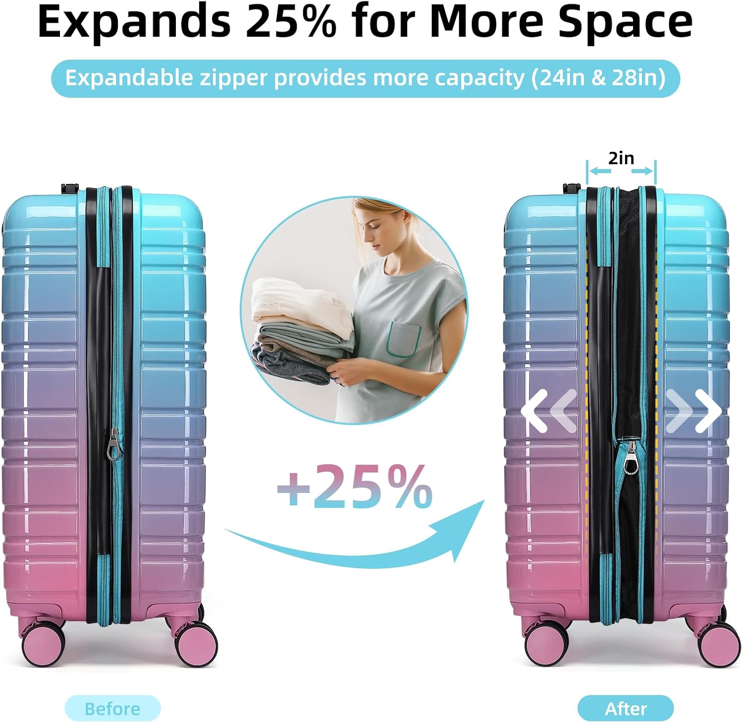 LARVENDER Luggage Sets 6 Piece, Expandable PC+ABS Hardside Multicolor Suitcase Sets with TSA Lock Double Spinner Wheels, Cotton Candy