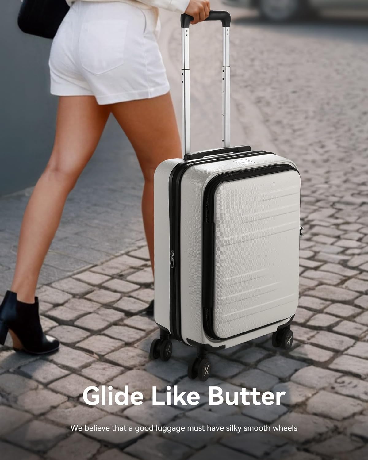 LUGGEX Carry On Luggage for Travel Front Opening, Expandable Polycarbonate Hard Shell Suitcase with Wheels for Men Women Chrismas Birthday (White, 19 Inch, 27.2L)