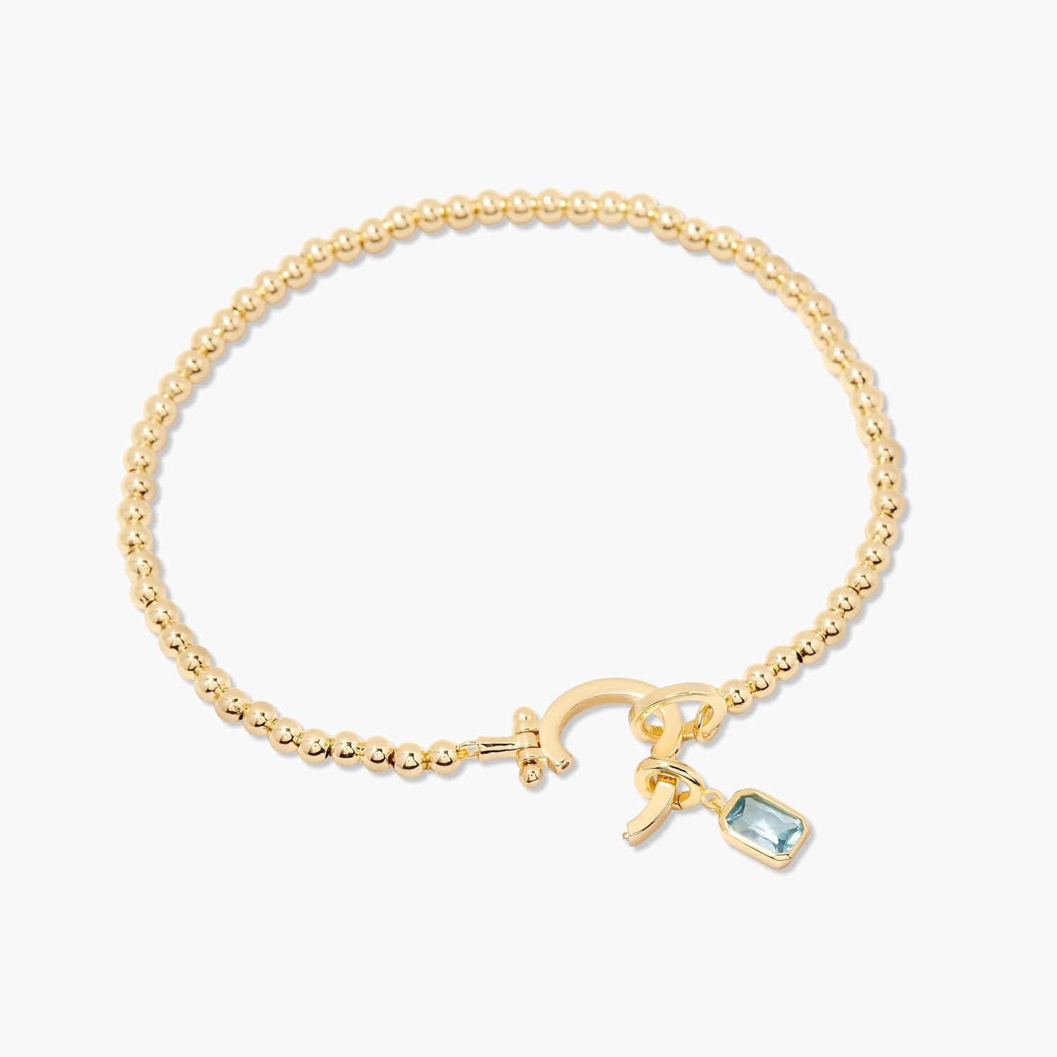 Treat your wrists to some bling with the Mackenzie Birthstone Bracelet. With a vivid birthstone charm, and intricately-beaded gold, this sparkling accessory is sure to add a touch of glam to any outfit. Avery Bracelet: Available in 14k gold plated or rhodium plated brass, 6″ bead bracelet, hinge closure measures 1/2″, 4mm beads Mackenzie Birthstone Charm: Available in 14k gold plated sterling silver or rhodium plated sterling silver1/8″x1/4″ charm, 5mm Cubic Zirconia NOTE – open bracelet hinge to apply bracelet. DO NOT slide bracelet over hand and wrist. NOTE – Birthstone color may slightly vary per the color chart. SKU: BYB1233
