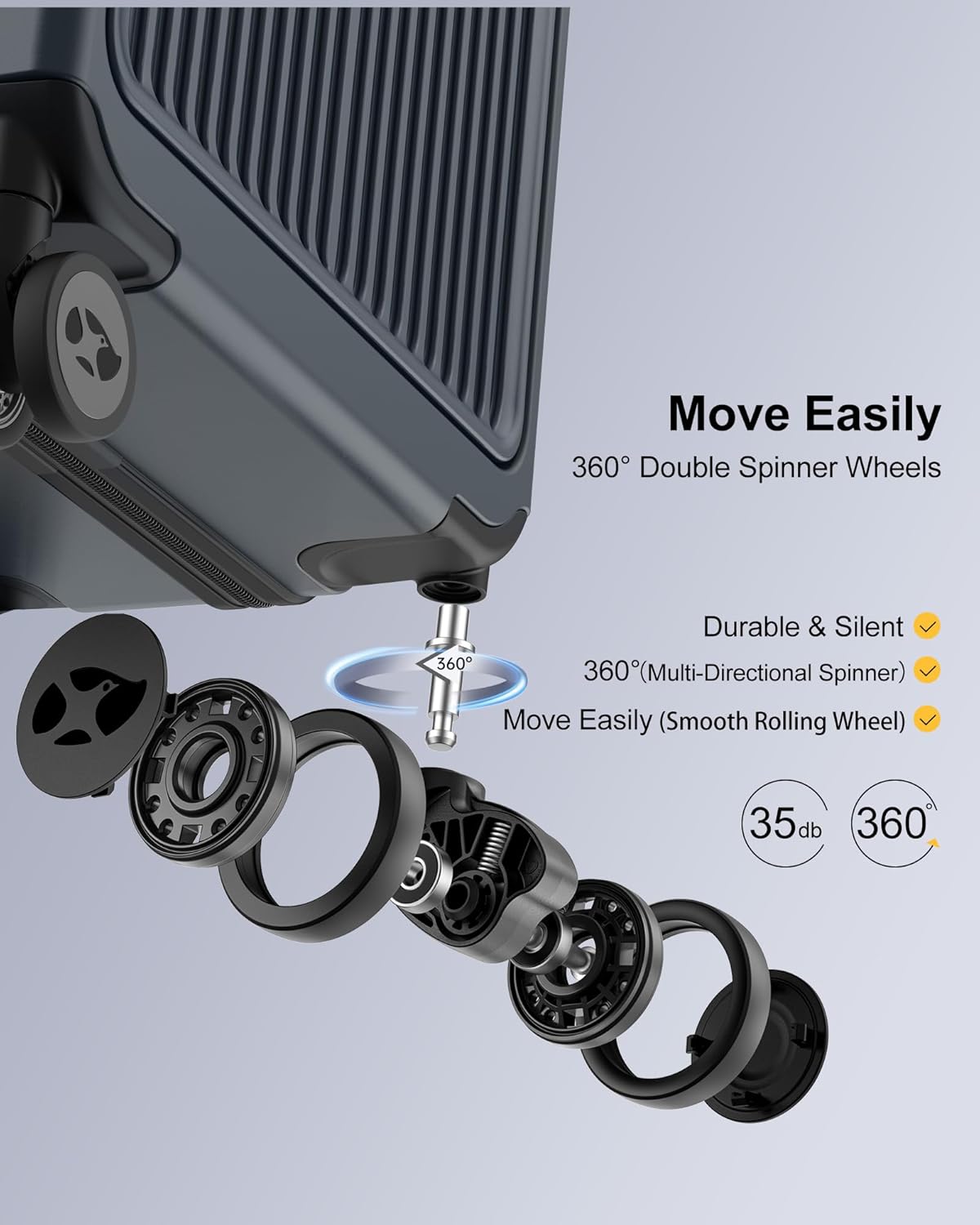 4 multi-directional double spinner wheels bring you effortless and noiseless experience.3-speed adjustable handle is suitable for different heights.Soft and breathable lining along with smooth zippers make your journey more comfortable.Built-in TSA lock protect your suitcase from damage during inspection.