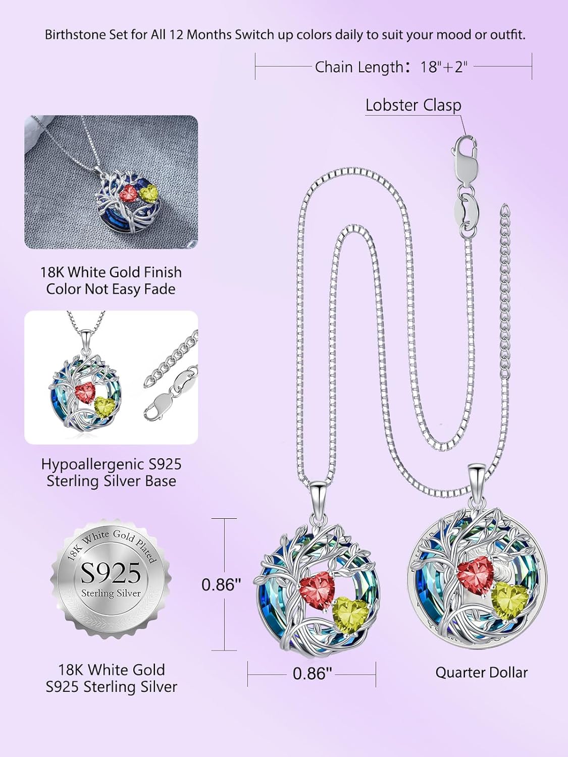 Crafted with tree of life and 2 crystal heart birthstone to symbolize eternal love and strength, this necklace serves as an Anniversary Valentines Day Mothers Day Birthday Christmas Jewelry, expressing that the love between you and her is forever.