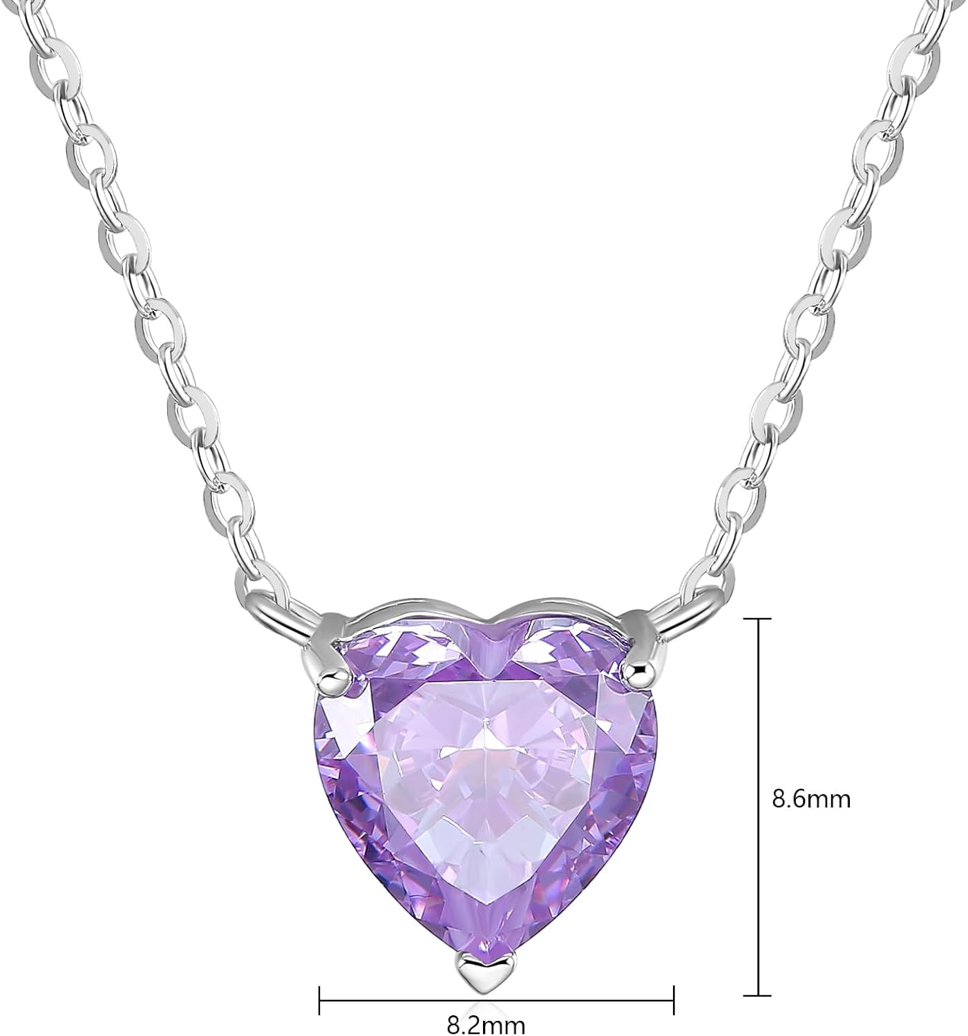 Pendant Necklace,925 Sterling Silver,Platinum Plated,Purple Heart,18 inches
