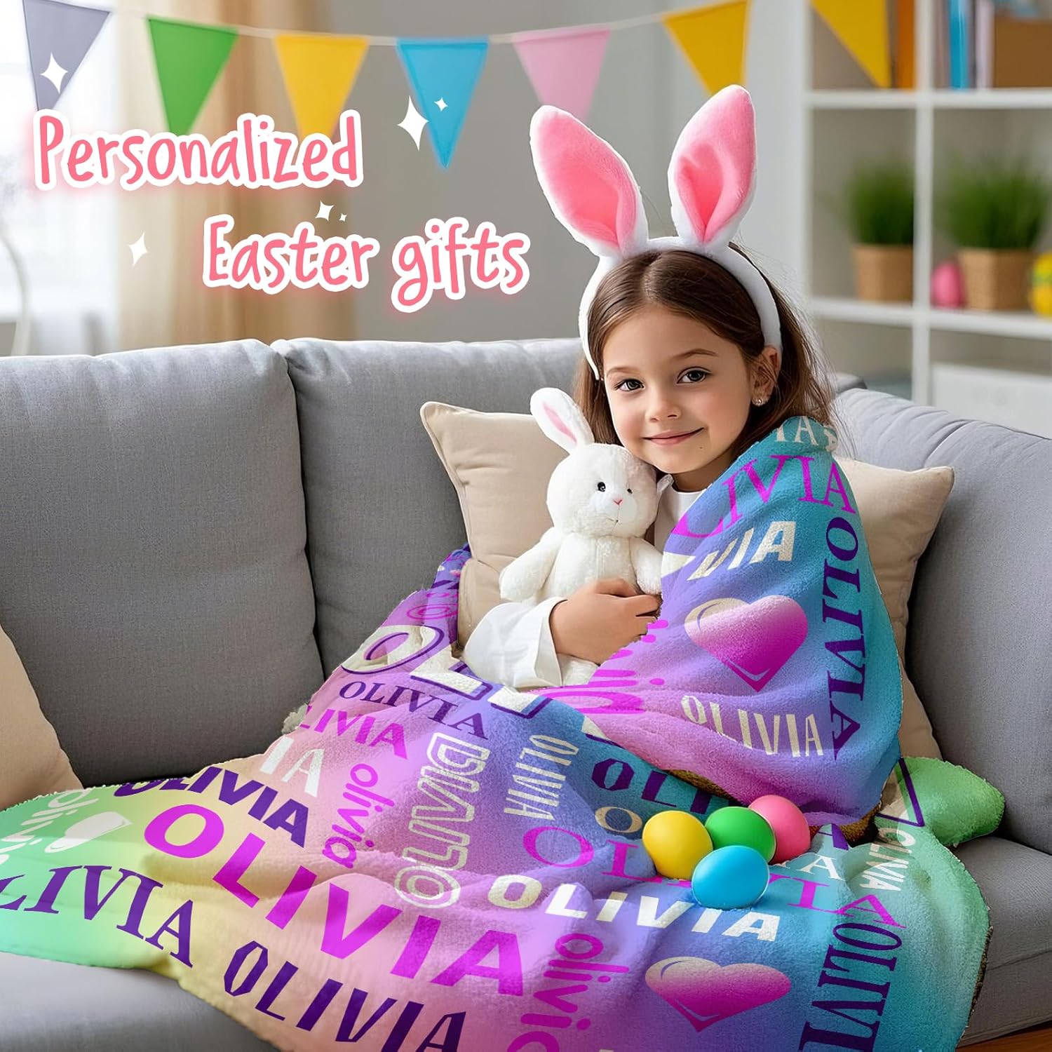 PERSONALIZED EASTER BIRTHDAY GIFTS: Our personalized fleece blankets are a unique gift for kids, newborns, babies, and family members. Name blankets are a great gift choice for birthdays, housewarmings, Valentine’s Day, Christmas, and baby showers. We promise this will be your new favorite personalized blanket or the best gift you’ve ever given.