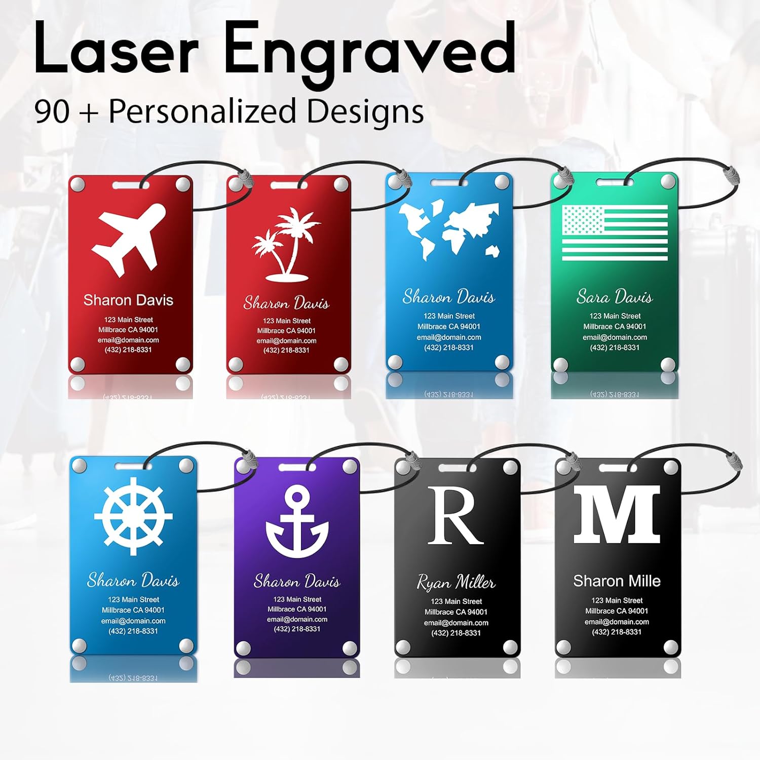 METAL LUGGAGE TAGS: Heavy duty, double-layer aluminum construction for durability.