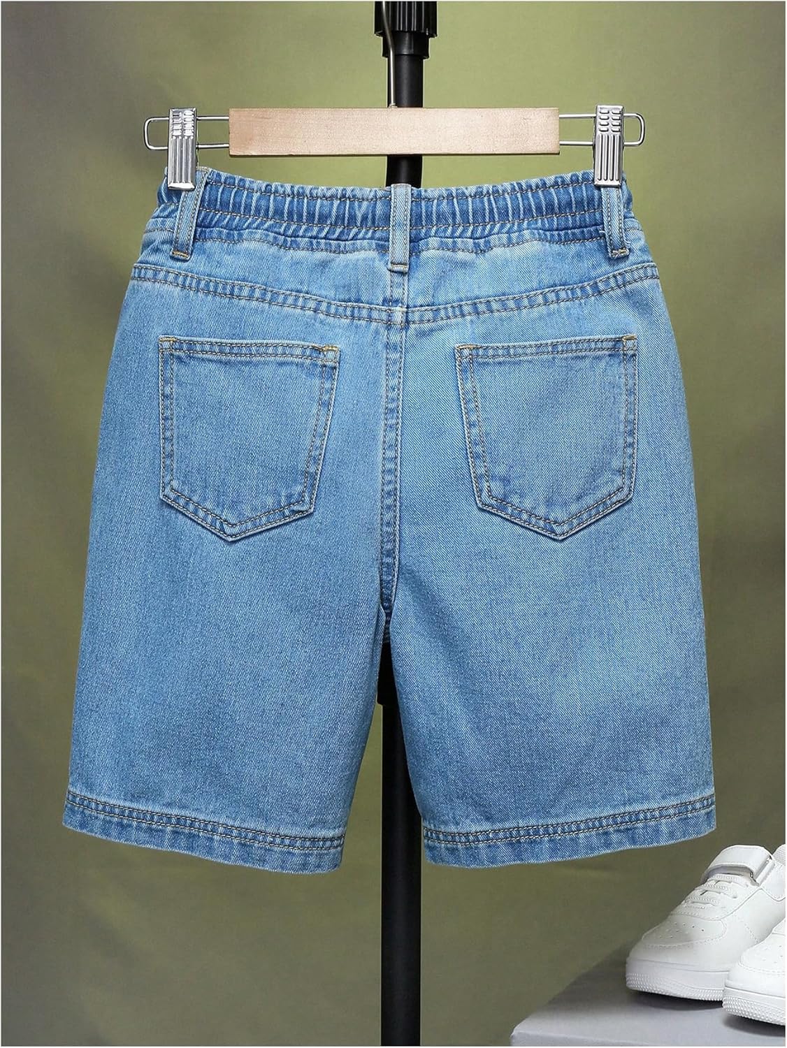 SOLY HUX Boy’s Ripped Jeans Drawstring Elastic Waist Straight Leg Denim Shorts Summer Bermuda Shorts