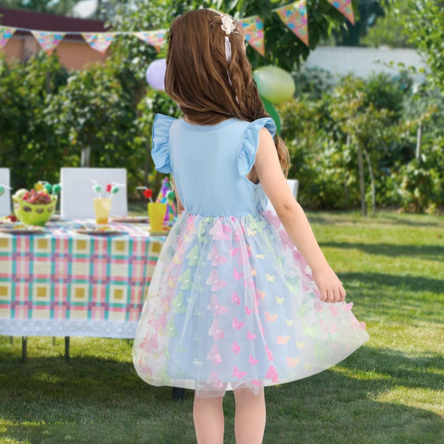 Toddler Baby Girl Dress Little Girls Summer Tulle Tutu Dresses Kids Flutter Sleeve Casual Party Clothes Outfit 2-7Y