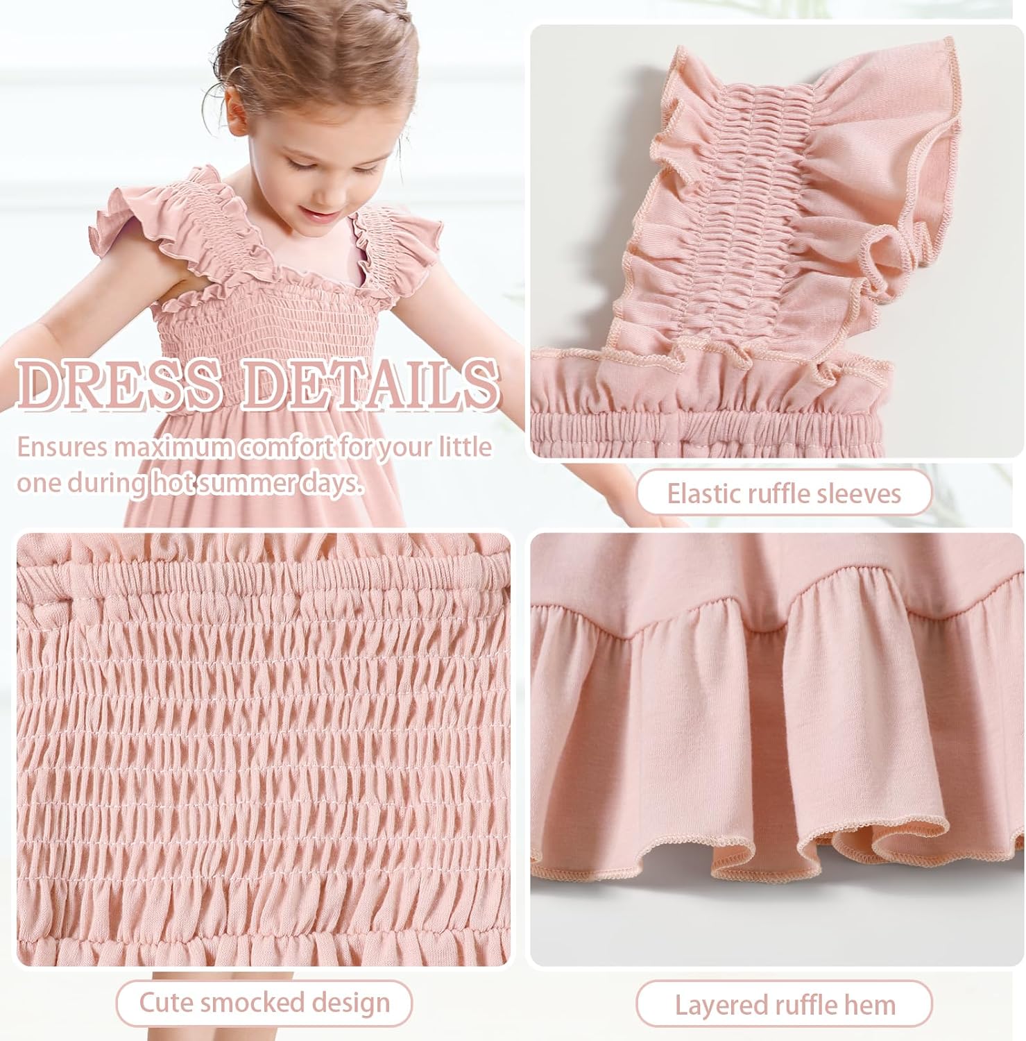 Be the first to review “Toddler Girl Summer Dress Sleeveless Smocked Baby Dresses Square Neck Kids Tiered Boho Sundress Beach Casual Birthday”
