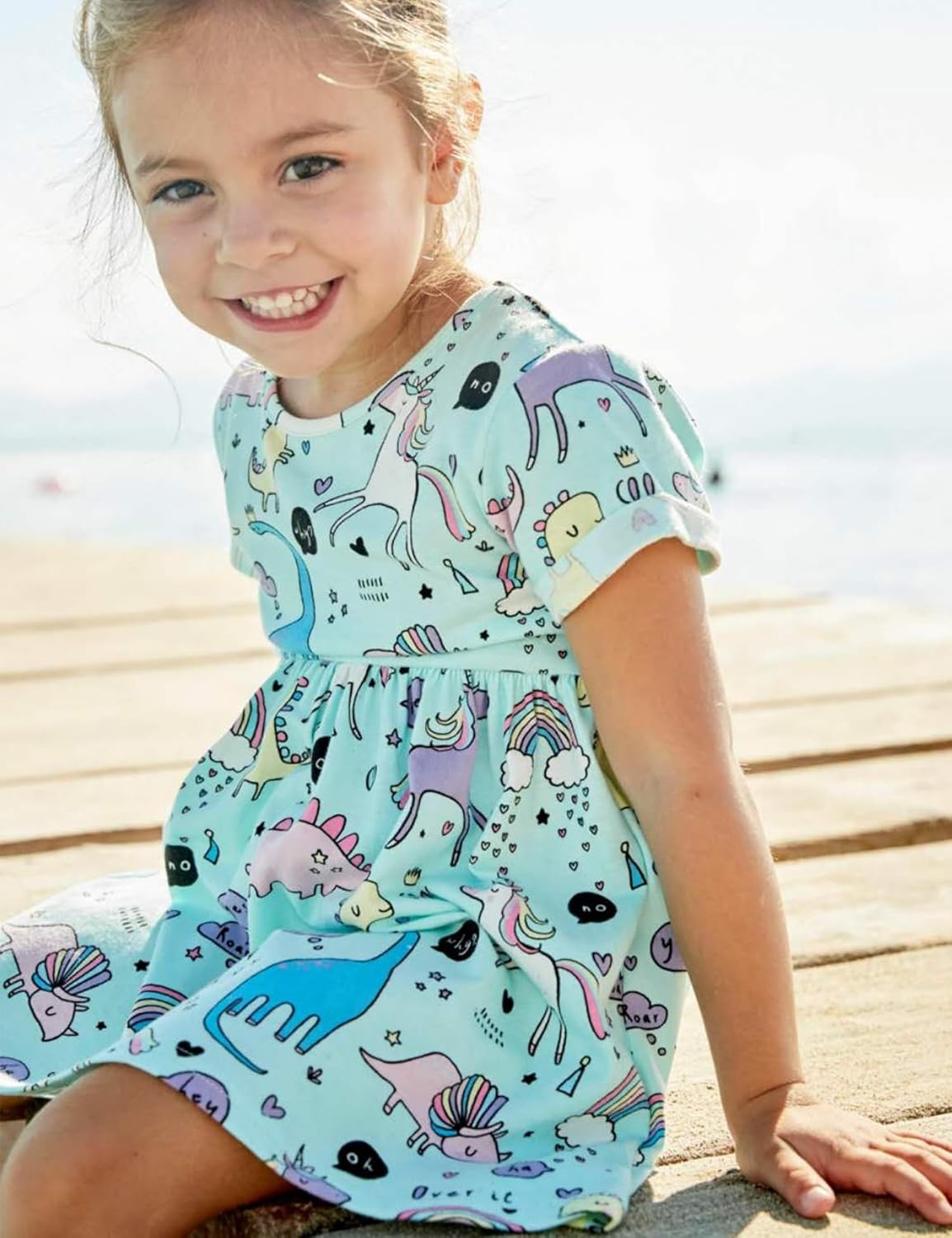 Toddler Girl’s Cotton Dress Toddler Girls Summer Dress Clothes Cotton Casual Cartoon Print Short Sleeve Dresses 1-7 Years
