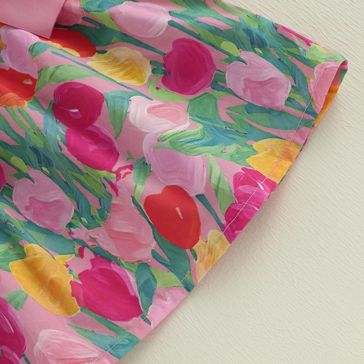 Be the first to review “Toddler Infant Baby Girl Summer Outfit Floral Tulip Dress Bow Puff Sleeve Princess Dress Sundress Smocked Clothes”