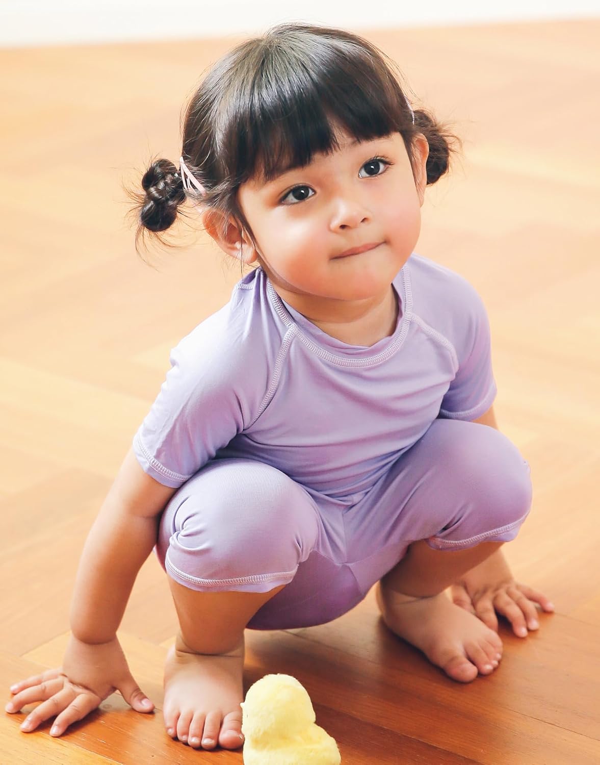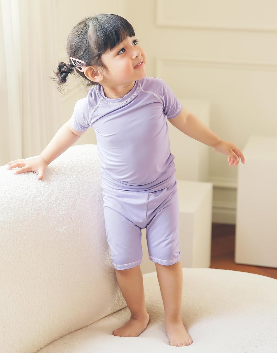 VAENAIT BABY Infant Toddler Junior Girls Boys Pajamas Pyjamas Sleepwear Set Solid Bamboo Daily Short Summer Pjs Set 6M-12Y